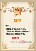 全国总顾问 张伟:原中央国际广播电台品牌中心主任、文化扶贫万里行总策划、中国关东书画研究会副秘书长、《今古事典》杂志副主编、《中国经济导报》站长。《爸爸我想你》《妈妈我依然爱你》等多部影片的编导,歌曲《我要回家》词作者,数次策划大型晚会和书画展。是我爱你中国 八方驰援 携手战疫全国公益抖音直播晚会的总策划。