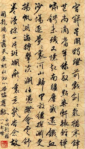 宵寂星阑。独灯前拭剑,剑气犹寒。锋芒尚滴当年緑,殷殷点染轩辕。轻弹啸,锷未残。又忆起、南疆鏖战还。铁血沙场逐梦,梦里河山。 归里放繮探渊。更扬帆湖海,搏击沧澜。任凭际会云舒卷,漫采一片斑斓。痴痴里,忘几番。念故国,龙鹏方翥天。愿记取初心,无悔旧鞍。