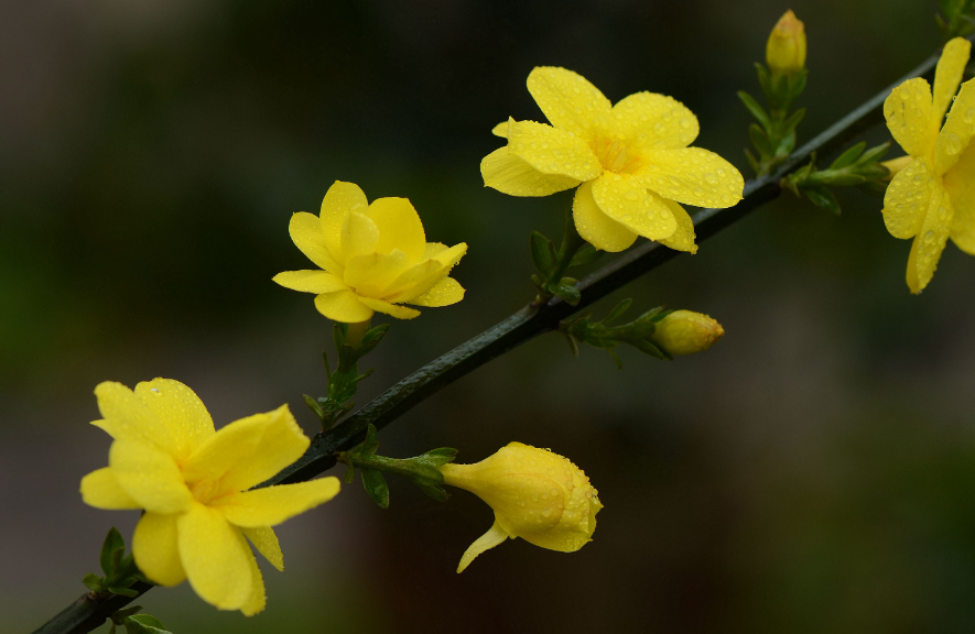 傲雪腊梅才闭蕊,迎春藤蕾又爬阶。