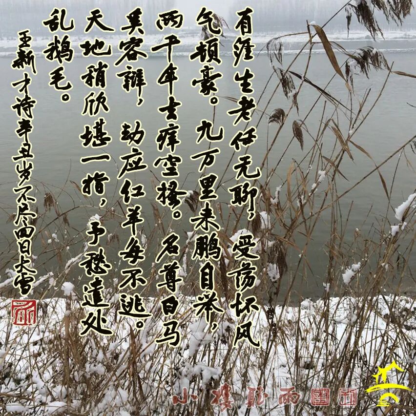 Snowfall at Year’s End of 2021Life’s finite, aging’s dull, yet I stand tall,Wind stirs my heart, my spirit won’t fall.Ninety thousand miles, the roc takes flight;Two thousand years, the itch persists in spite.White horse of fame sees no need for debate;Red sheep entrapped cannot escape its fate.Heaven and earth make a sight to behold;My worries scatter, like goose feathers cold.