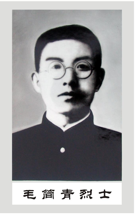 毛简青是我党早期学历较高的重要领导人,著名的无产阶级革命家、宣传教育家。1891年11月11日,出生于平江县金窝村的一个富绅之家。1913年赴日本留学,1921年夏毕业于日本东京帝国大学,获经济学硕士,随后回国效力。1921年冬,经李六如推荐,毛泽东在长沙清水塘同毛简青长谈后,吸收他加入中国共产党。尔后,毛简青在长沙、广州、梧州、南宁、平江等地,以学者的身份作掩护开展党的工作。1932年秋牺牲于湖北洪湖,时年41岁。